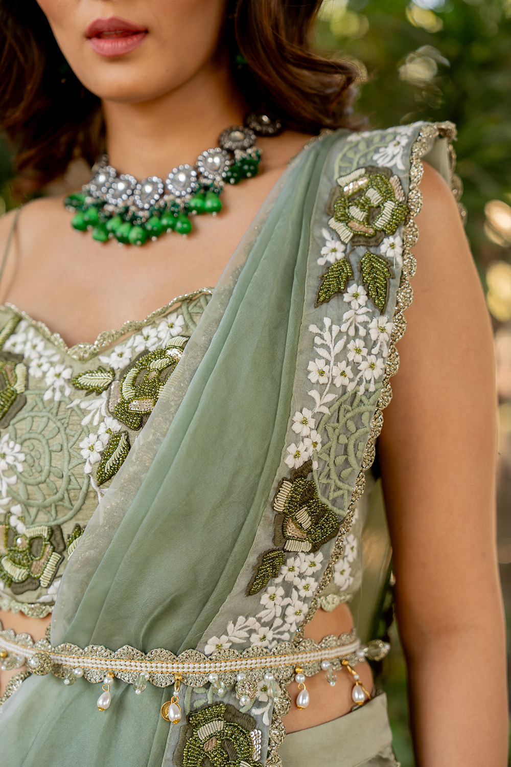 Emboridery & Embellishments: Subtle thread embroidery with embellishments using beads and nakshi. Tassels using multiple elements become the high point