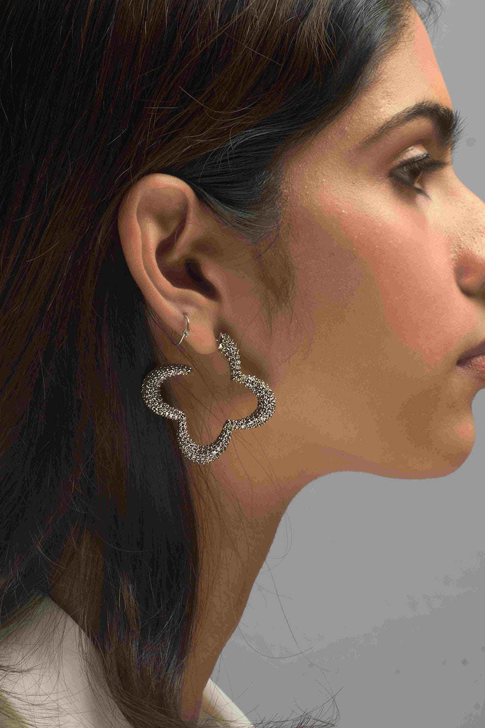The Statement hoops, set with 720 sparkling stones, are handcrafted by skilled artisans. These earrings embody luxury and craftsmanship, offering a bold, elegant accessory for any occasion.
