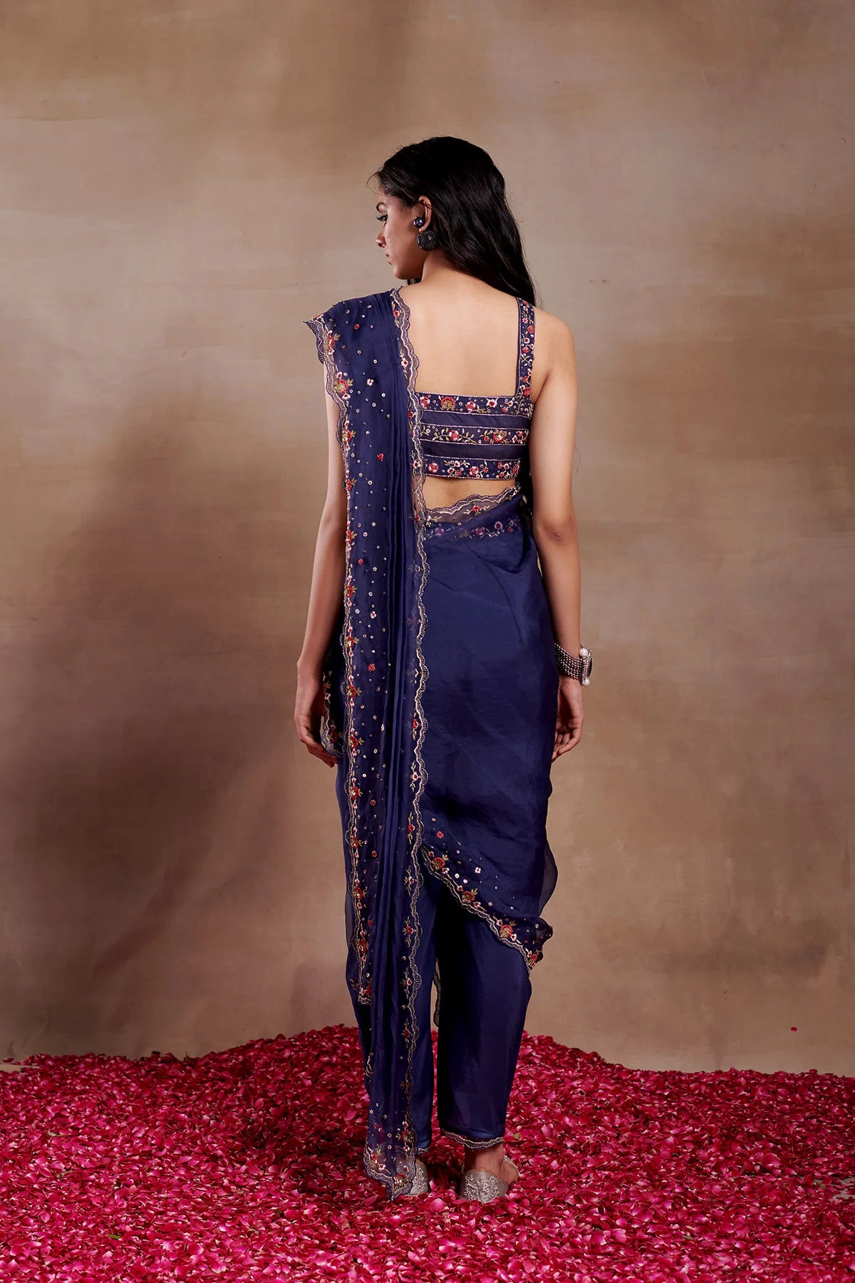 Dhoti Style Draped Saree With Light Light Embroideries All Over The Edges.