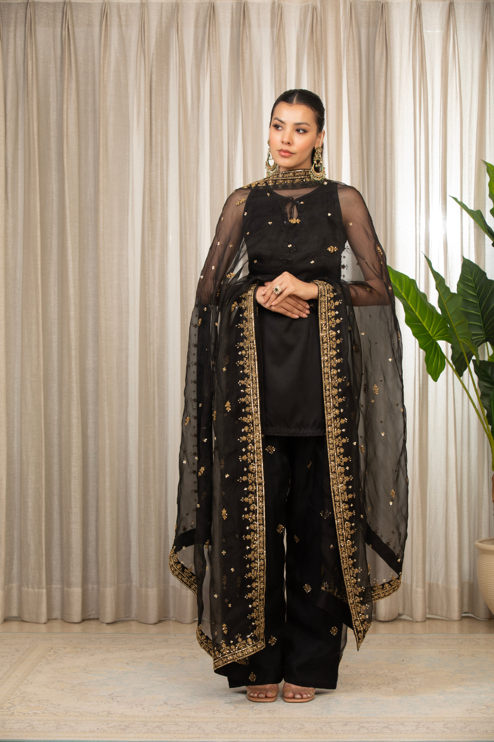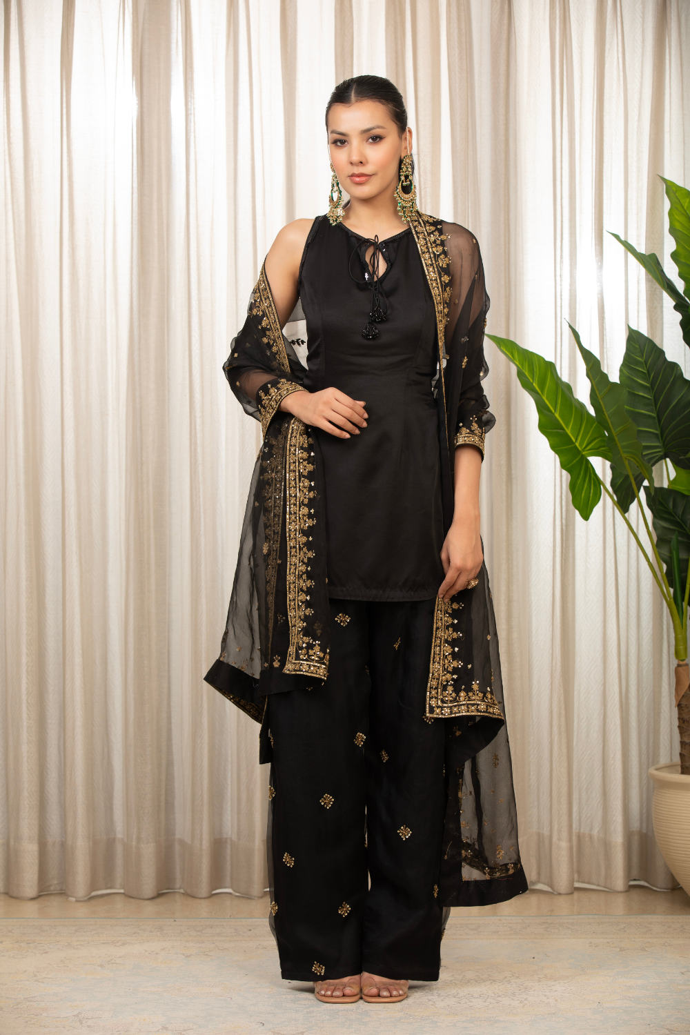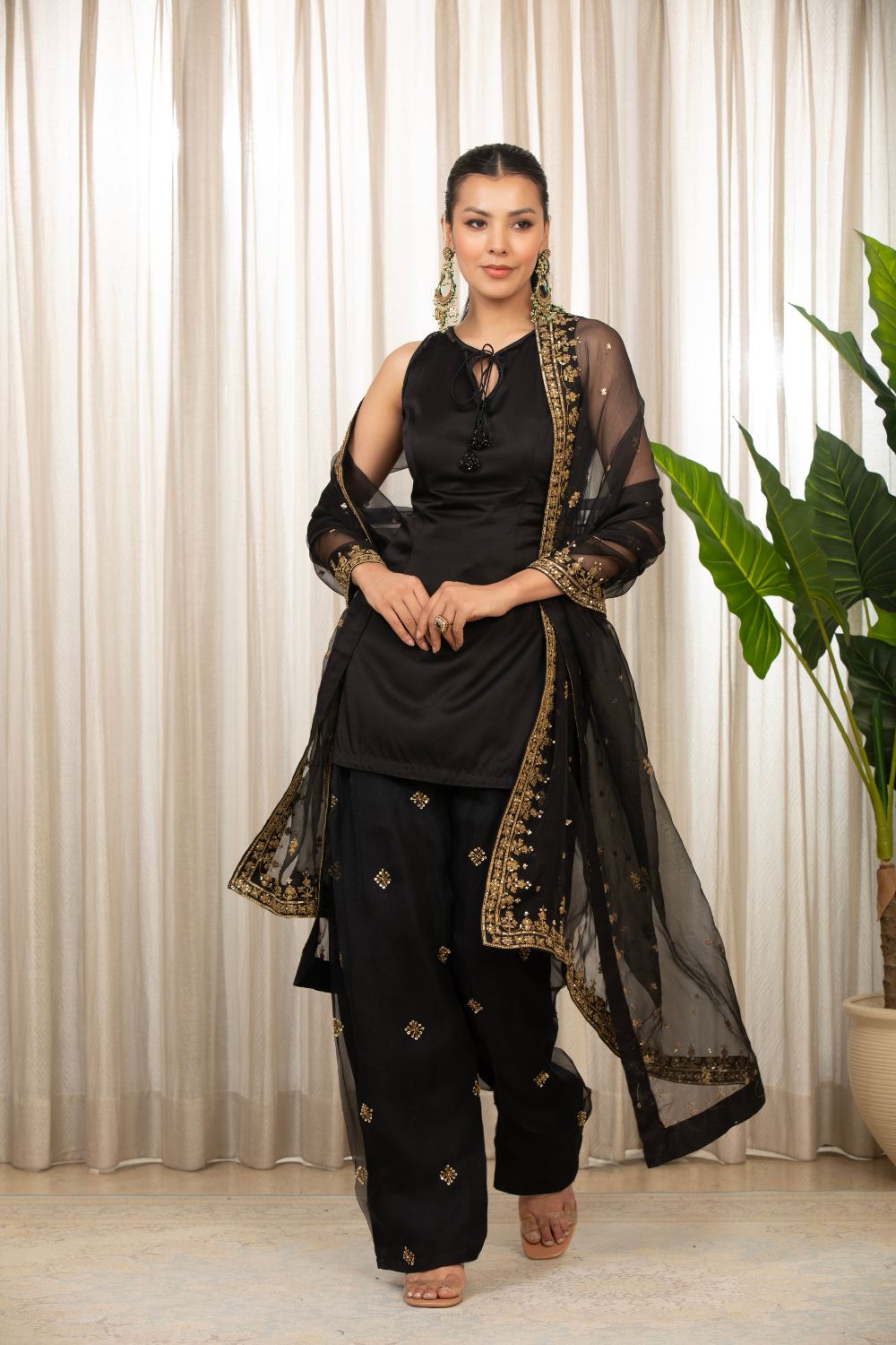 It contains with kurta embellished with sequence lace on neck line . It is paired with handwork salwaar and embroidered Dupatta
