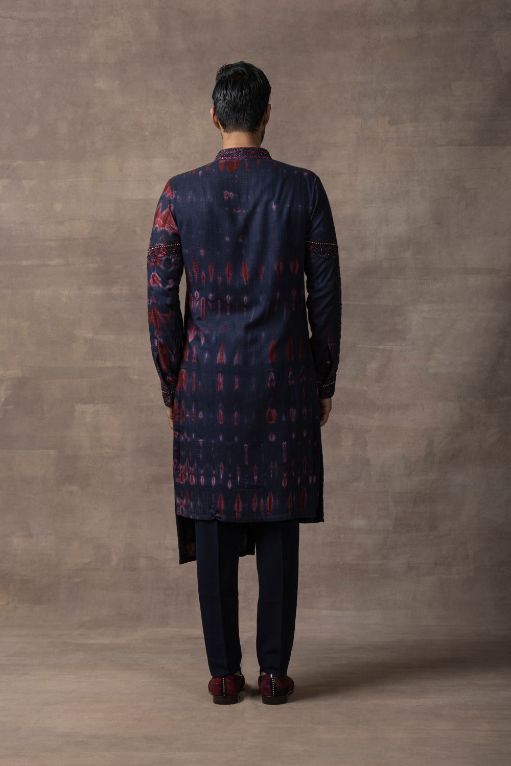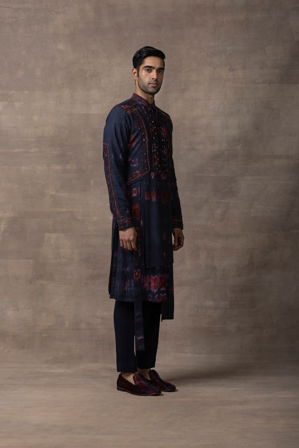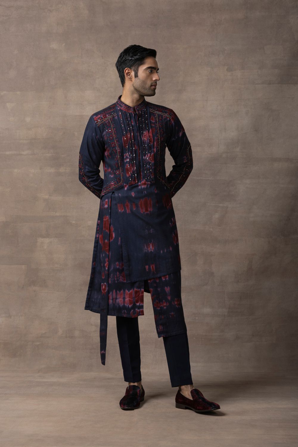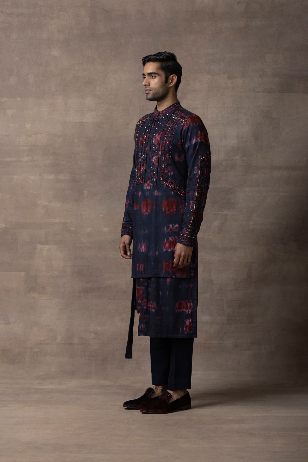 Featuring navy and red tie and dye kurta with thread and pearl work paired with pants