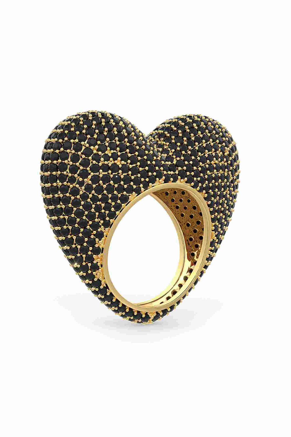 This love ring features a striking heart design encrusted with stunning black crystals, creating a bold yet elegant statement piece. taking the centerstage in any outfit.