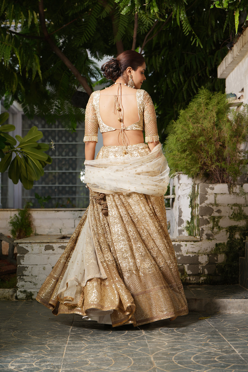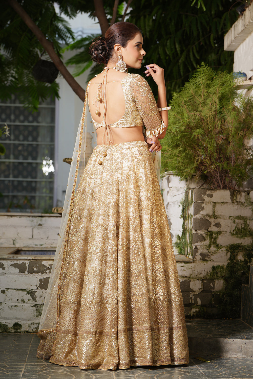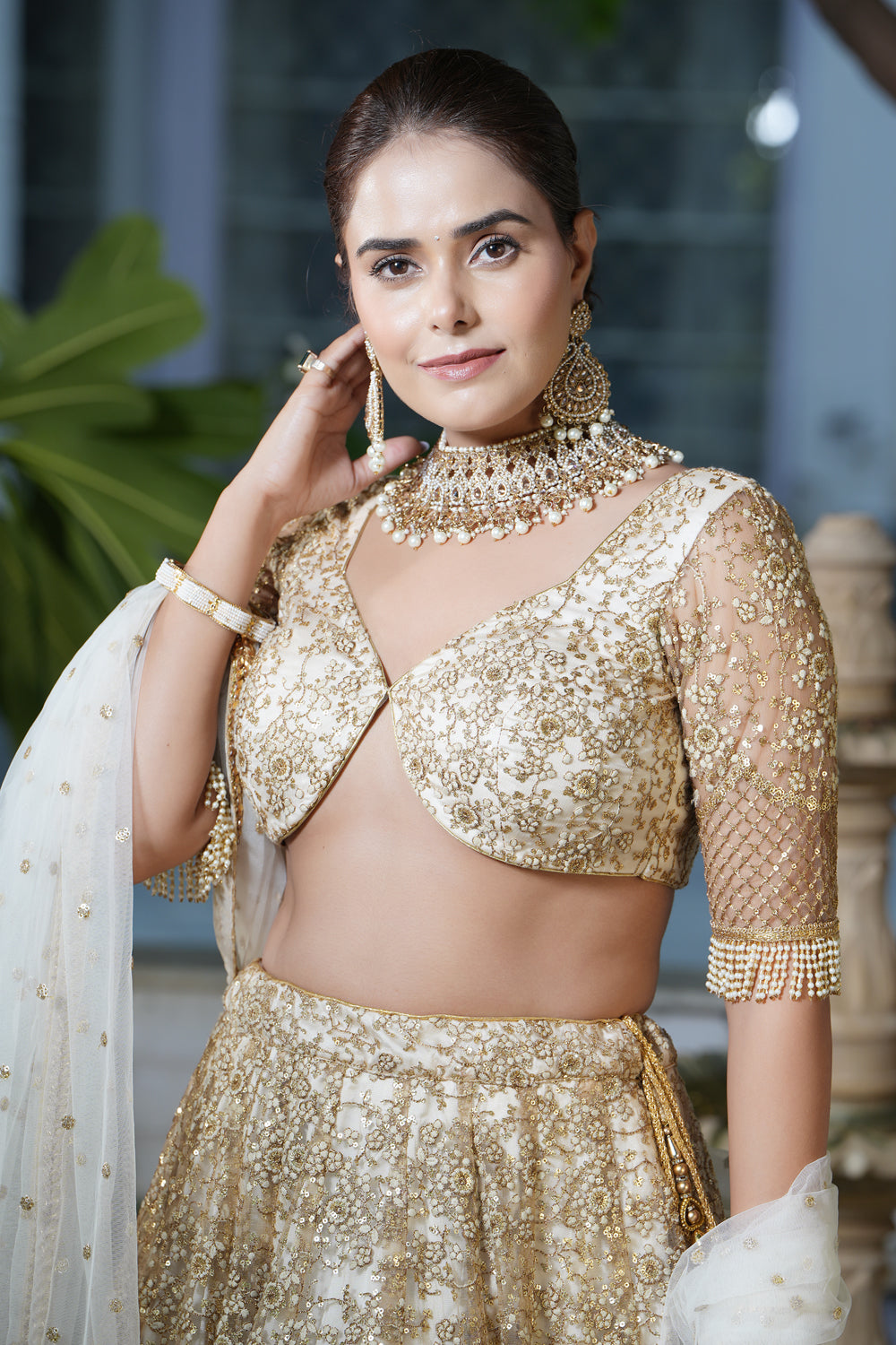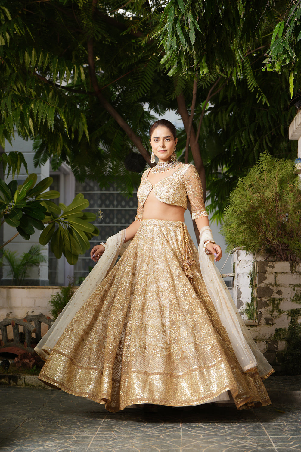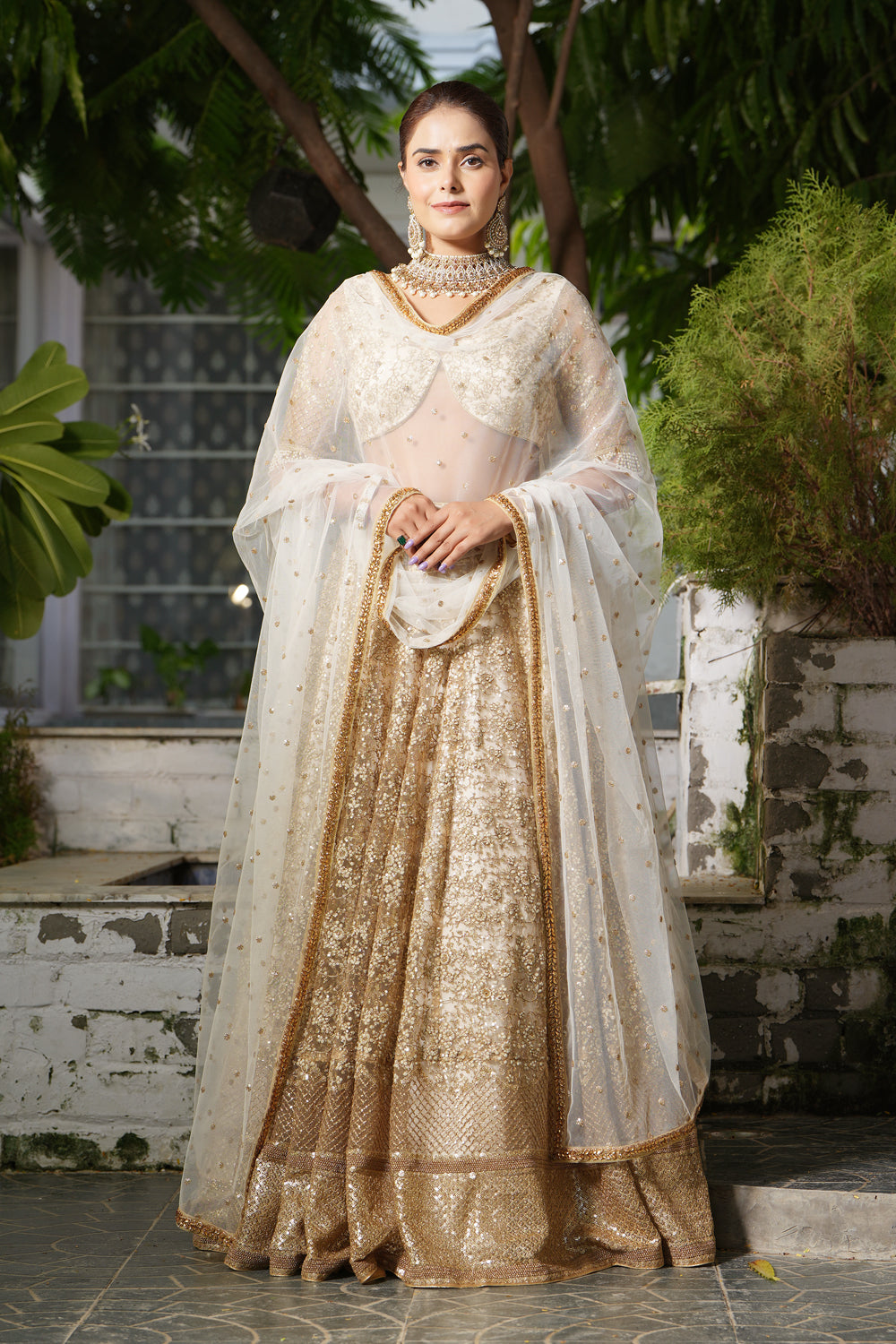 Floral embroidered lehenga in delicate tulle fabric is highlighted with sequins. it is paired with embroidered blouse along with a floral-embroidered dupatta.