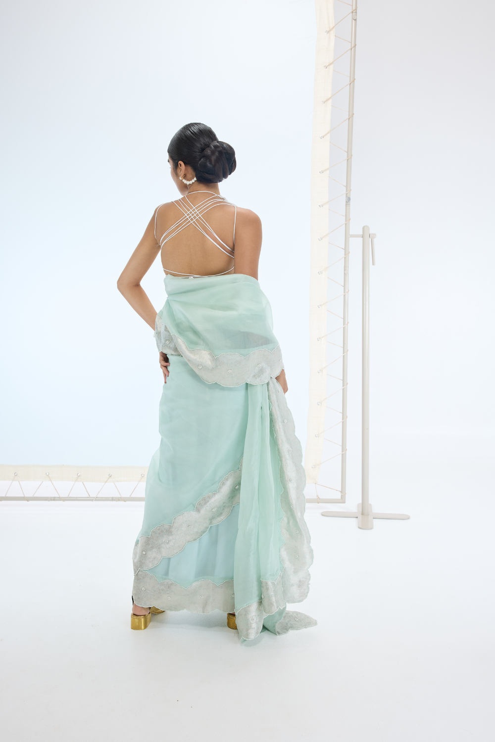 The Jane Saree in a soft pink is handwoven in pure organza, adorned with intricate pure silver zari beading and finished with elegant scalloped edges. Lightweight and fluid, this saree drapes effortlessly, offering graceful movement and a soft, ethereal touch against the skin. For a refined finish, style it with the Ekaya x Anaash Pallu Holder—the perfect blend of function and finesse to secure your drape beautifully. The beauty of reinvention lies in its subtlety. Discover timeless sarees reinterpreted for today’s world—modern, wearable, and steeped in legacy.