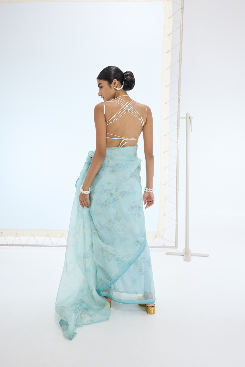 Introducing Ekaya Pastels, a collection that reimagines the beauty of craft through a creative interplay between delicate French lace and our signature Banarasi textile. The Luna Saree in aqua green is handwoven in pure organza and features delicate hand embroidered detailing. Lightweight and fluid, this drapess beautifully and feels soft on the skin. We recommend styling the look with Ekaya X Anaash pearl belt for an extra edge.