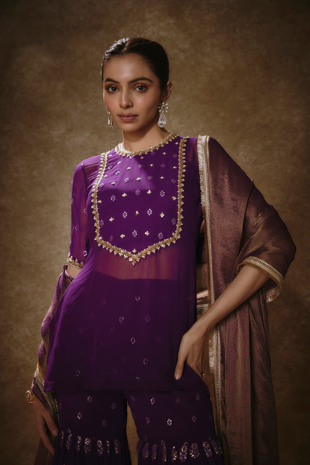 Royal Purple Kurta Gharara Set